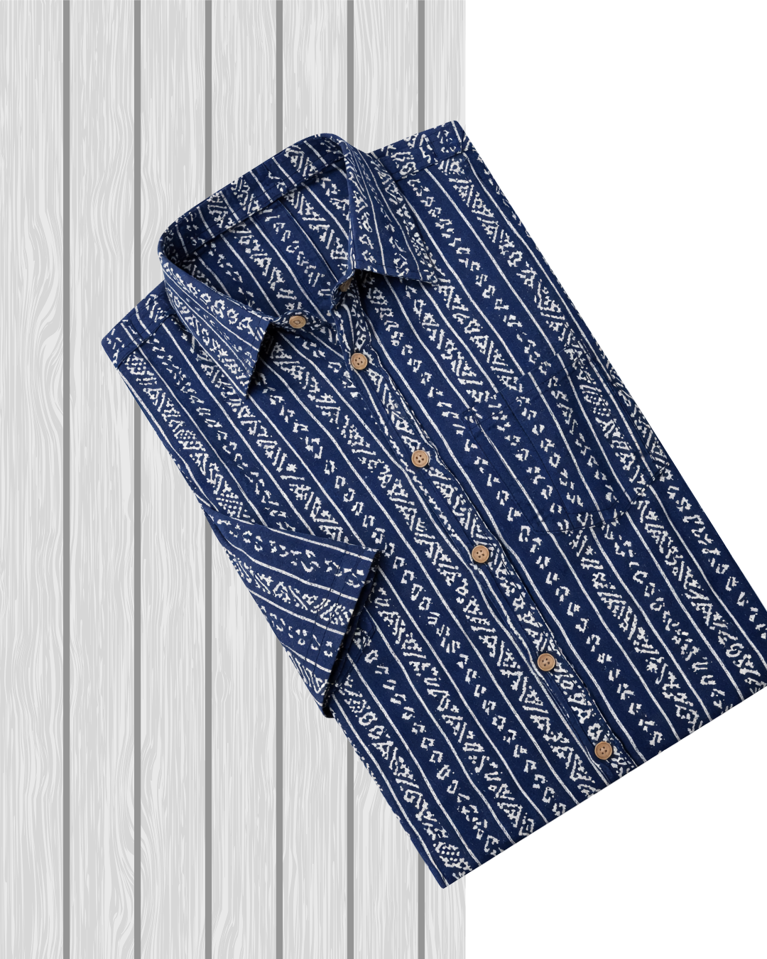 Men’s Sanganeri Print Cotton Blend Shirt – Indigo Blue, Half SleeveMen’s Sanganeri Print Cotton Blend Shirt – Indigo Blue, Half Sleeve