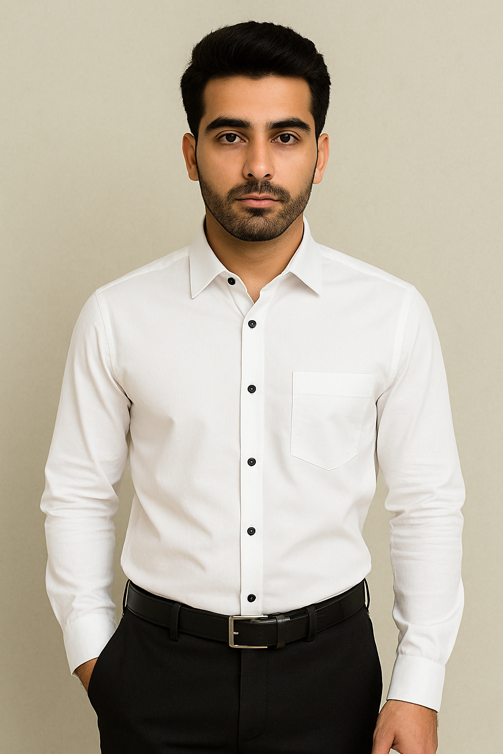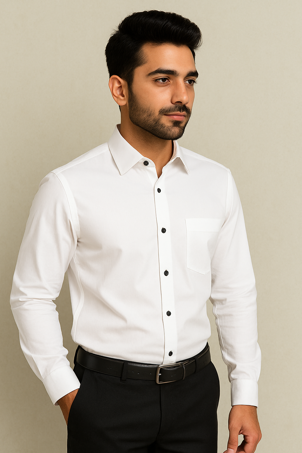Men’s White Tailored Fit Formal Shirt with Black Buttons – Cotton Blend